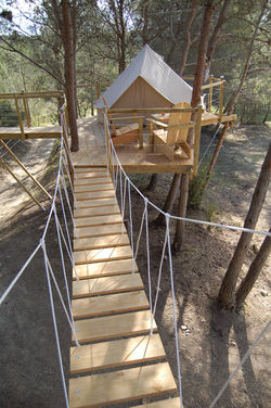 Perchée dans les pins, dans le grand parc des chevaux retraités, une tente en toile Canvas, de grande qualité, équipée d’un lit 2 places.